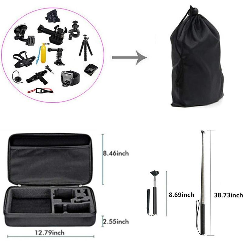 71-i-1 actionkamera-tilbehørssett - bryst-/hodestropp, selfiestang, stativ, flytende håndtak og monteringssett for GoPro, DJI, Insta360, AKASO