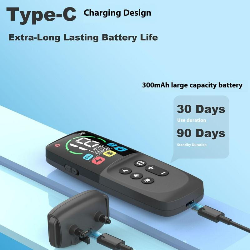 - Lys LCD-skjerm på begge enhetene - du ser batteritid, aktiv modus og halsbåndets lommelykt på et øyeblikk; fjernlåsbryteren forhindrer utilsiktede trykk i lommen.
