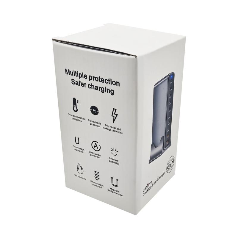 Få strøm til hele skrivebordet fra én kompakt hub med denne 800W GaN-ladestasjonen for skrivebordet. Den er designet for krevende oppsett og kombinerer flere USB-C- og USB-A-utganger, slik at du kan lade bærbare datamaskiner, nettbrett, telefoner og tilbehør samtidig - uten rot med separate adaptere. GaN-teknologi bidrar til høy effektivitet med lavere varmeutvikling, noe som gjør den til et smart valg for hjemmekontorer, studioer, reparasjonsbenker og felles ladeområder.