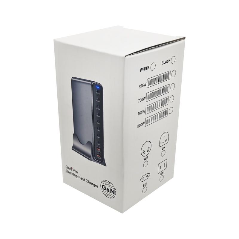 800W GaN-skrivebordslader med flere porter og stativ - USB-C/USB-A hurtigladestasjon, smart strømfordeling, 110-240 V