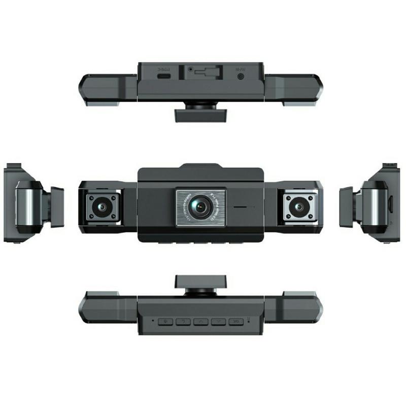 Frontkameraet har et 170° ultravidvinkelobjektiv som fanger opp mer av veien foran deg. Kombinert med Full HD 1080P-opptak med 30 bilder i sekundet gir dashbordkameraet skarpe, detaljerte opptak selv ved høye kjørehastigheter. Sidekameraene kan roteres uavhengig av hverandre, noe som gir fleksibel justering for innvendig eller utvendig opptak.