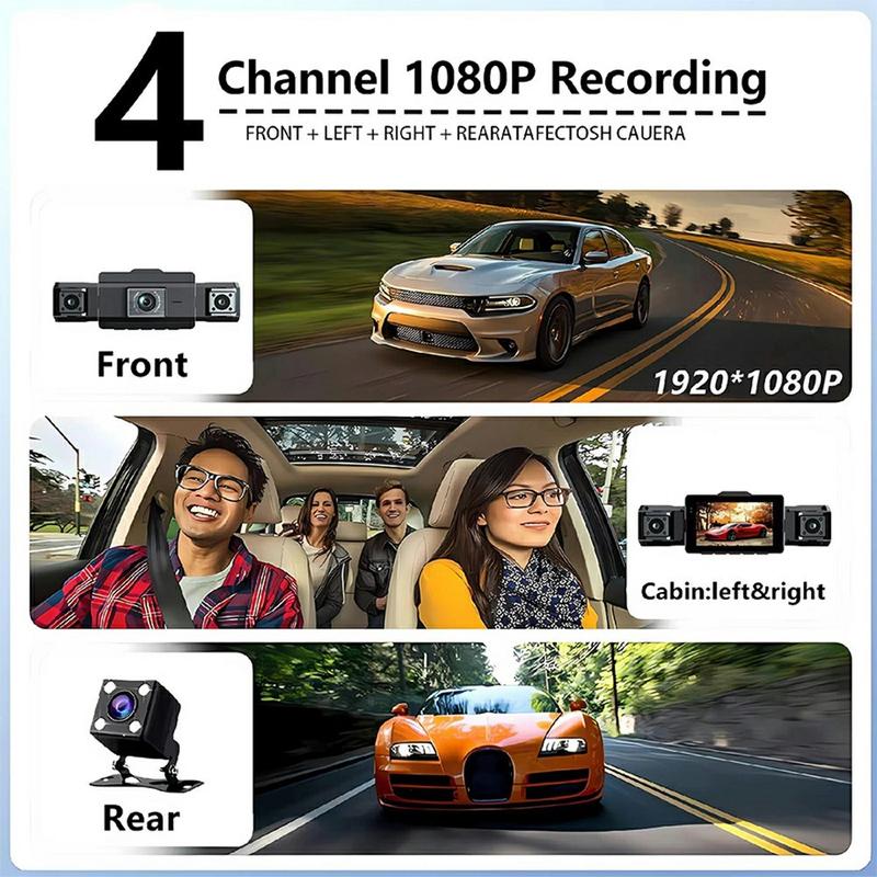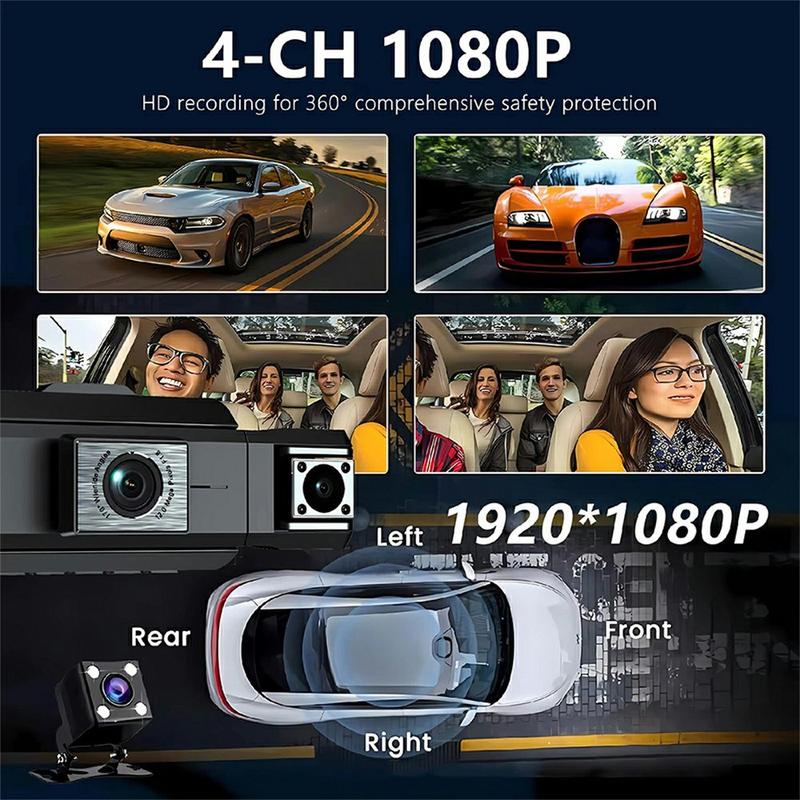 9728D 1080P WiFi Dash Cam / 4-kanals HD-bilkamerasystem med nattsyn og sløyfeopptak