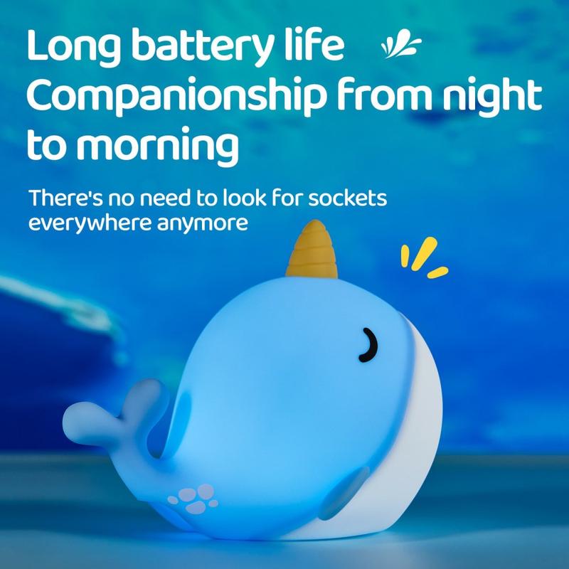 Bring et snev av havmagi inn i hjemmet ditt med A044 Narwhal nattlampe i silikon. Med sitt sjarmerende narhval-design og uimotståelig myke silikonhus gir denne lampen varme, personlighet og ro til ethvert rom. Den er perfekt for både barn og voksne, og er mer enn bare et lys - den er en beroligende følgesvenn som gjør leggetid eller hviletid til et fredelig ritual.
