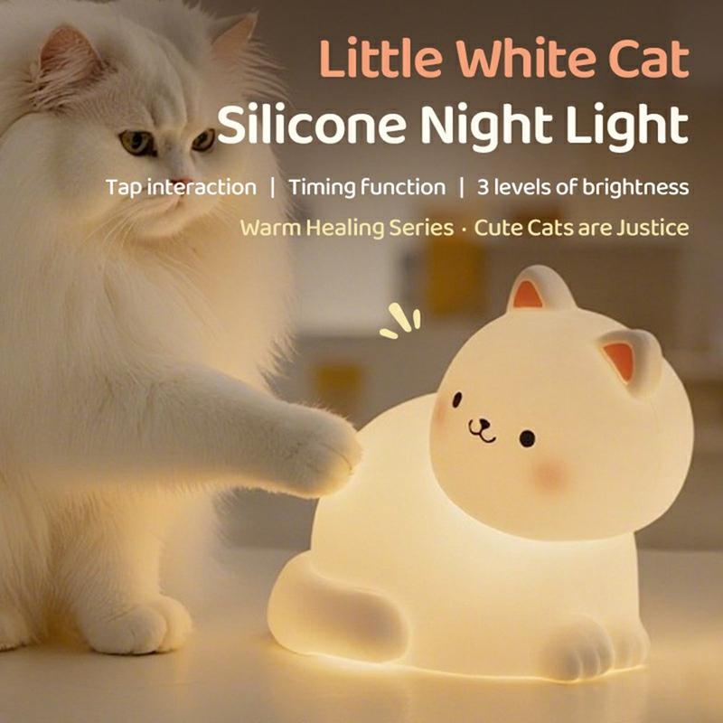 A068 Søt nattlampe av kattesilikon med trykkontroll og RGB-fargeskift - nattbordslampe og skrivebordsdekorasjon