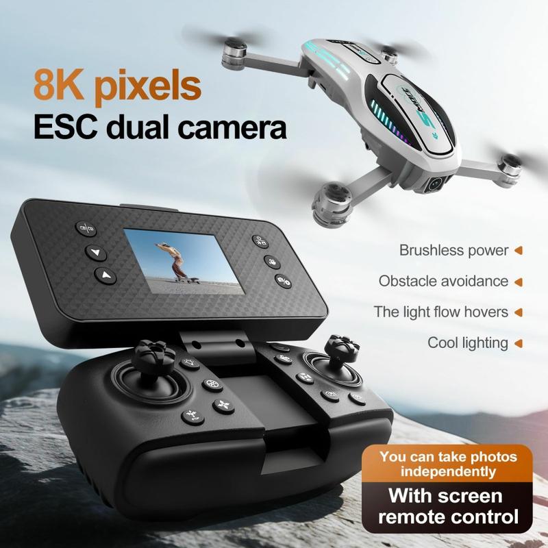 A118 børsteløs drone - sammenleggbart RC-firkantkopter med optisk flyt, hindringsunngåelse, 90-graders justerbart kamera og avtakbar skjermkontroll - 3 batterier og 8 GB kort