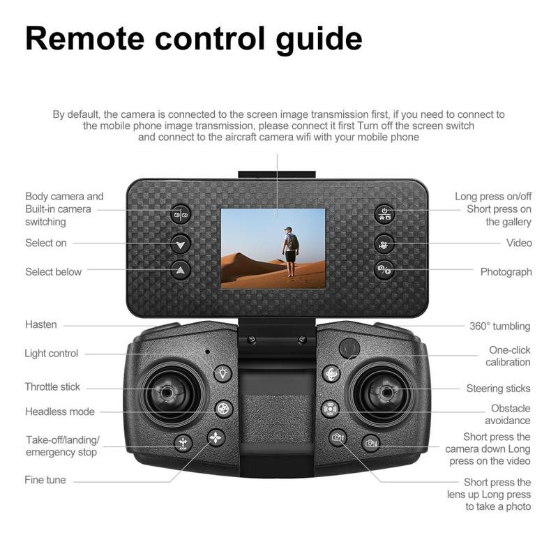 - Omfattende flymoduser - start/landing med én tast, høydeholder, 360°-vendinger, hodeløs modus, bevegelsesgjenkjenning, hastighetsjustering og retur med én tast.