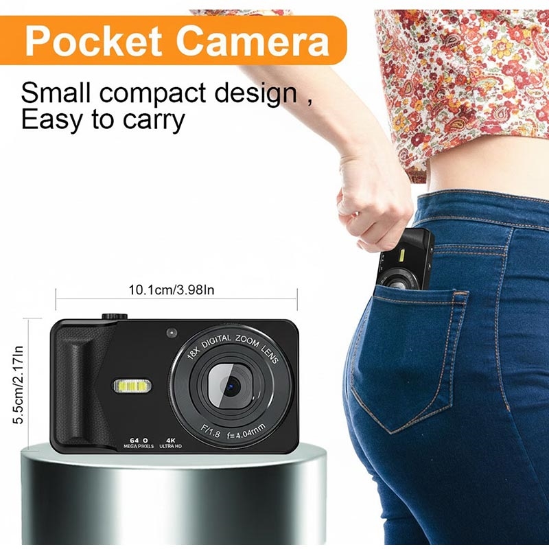A59 Kompakt digitalkamera med 2.8" IPS-skjerm - 64MP-bilder, 18× zoom, 2K-video (4K interpolert)