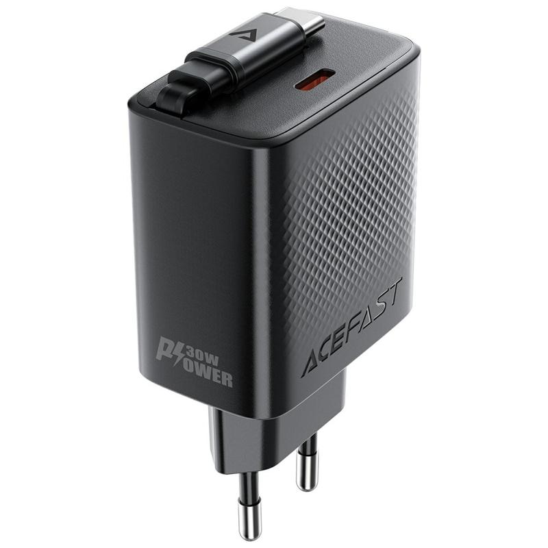 Acefast A110 30W GaN-lader med uttrekkbar USB-C-kabel og USB-C-port - EU-kontakt