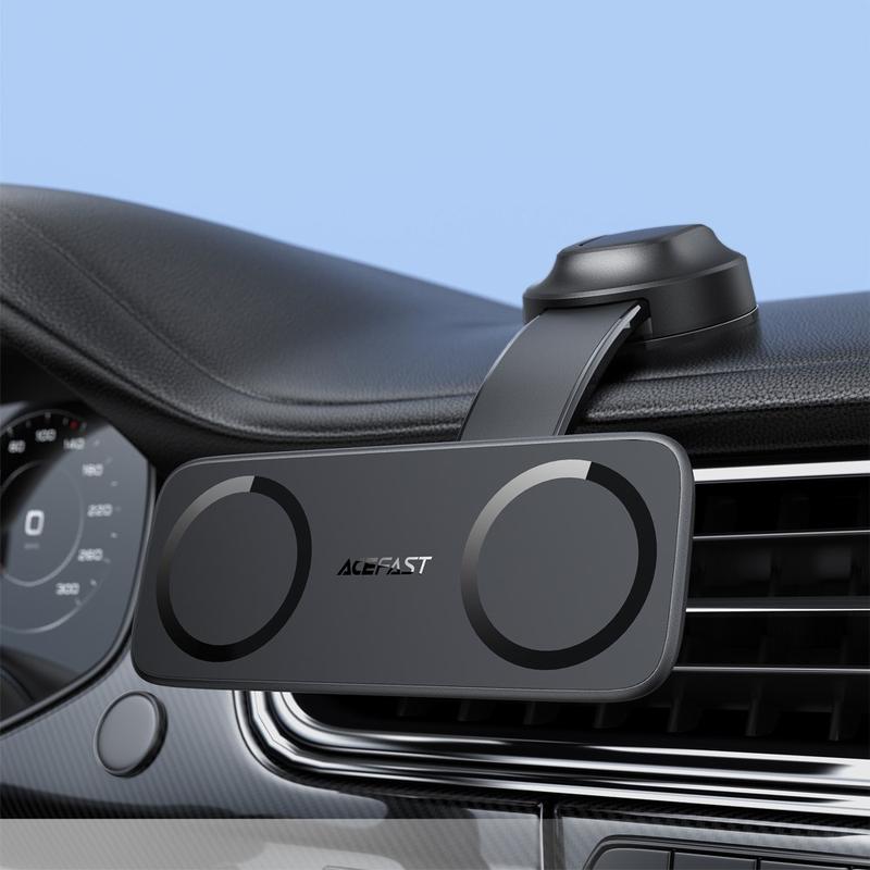 ACEFAST D60 skiller seg ut med sin dobbeltmagnetiske design, noe som gir deg den sjeldne fordelen av å kunne montere to smarttelefoner samtidig. De sterke magnetene, den ripebeskyttende silikonpolstringen og de fleksible visningsvinklene gjør den betydelig mer allsidig enn vanlige fester for én telefon. Den er laget av slitesterke materialer og konstruert for sikker montering på dashbordet, og holder enhetene dine stabile, synlige og tilgjengelige for tryggere og mer effektiv kjøring.