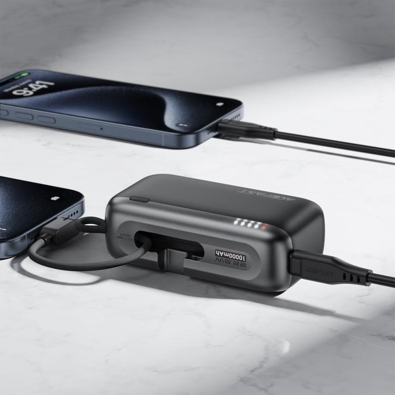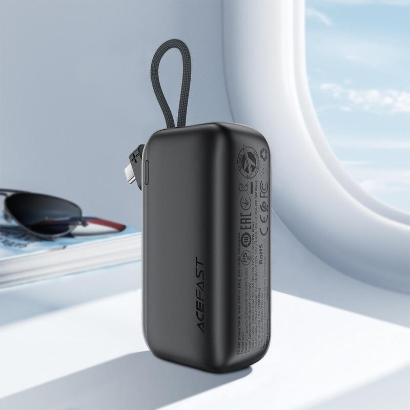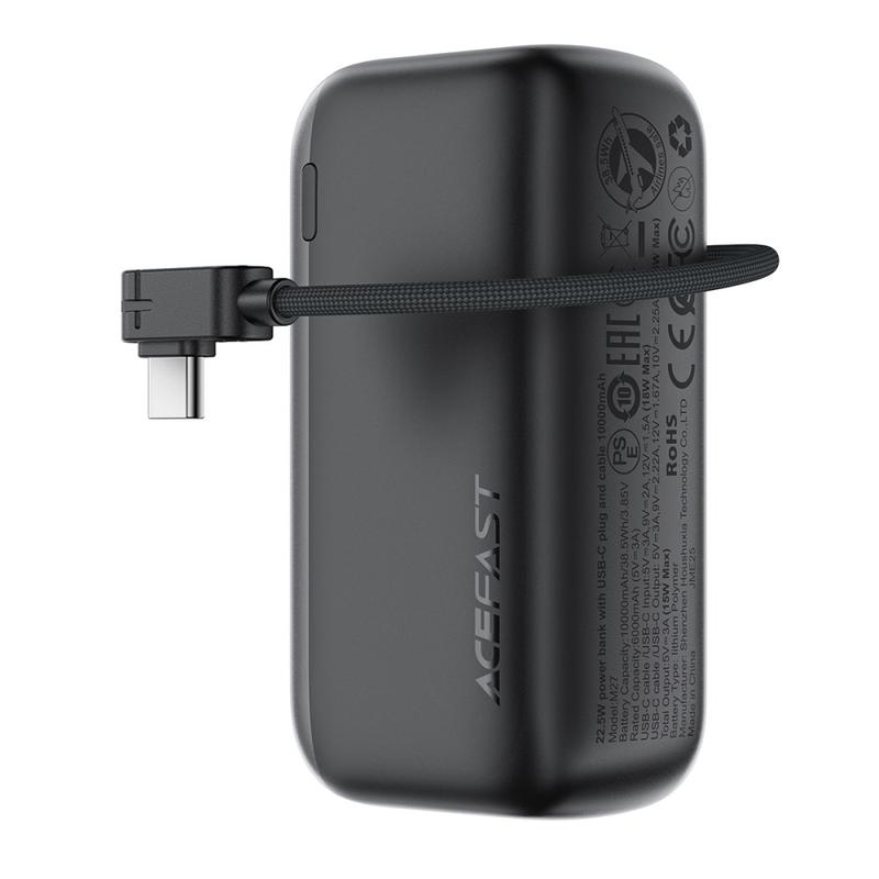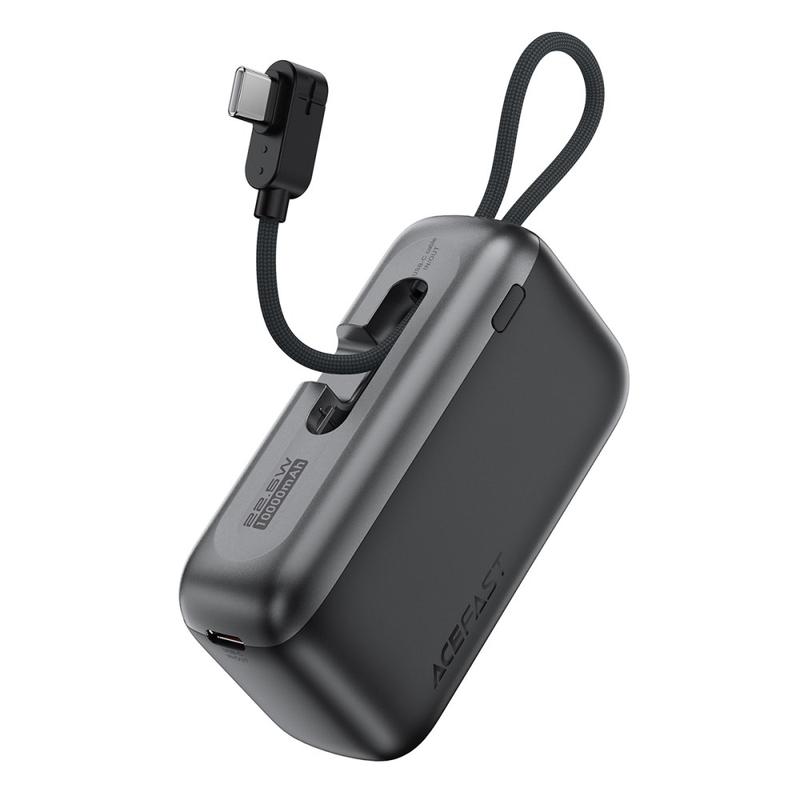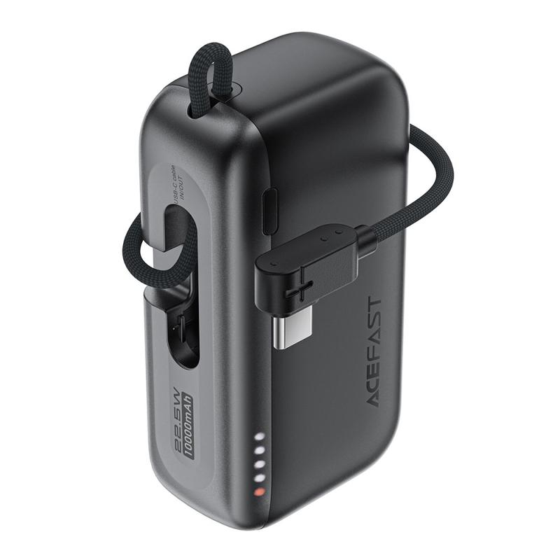 Acefast M27-10000 Mini 22.5W hurtigladende strømbank - USB-C PD + innebygd kabel, LED-skjerm