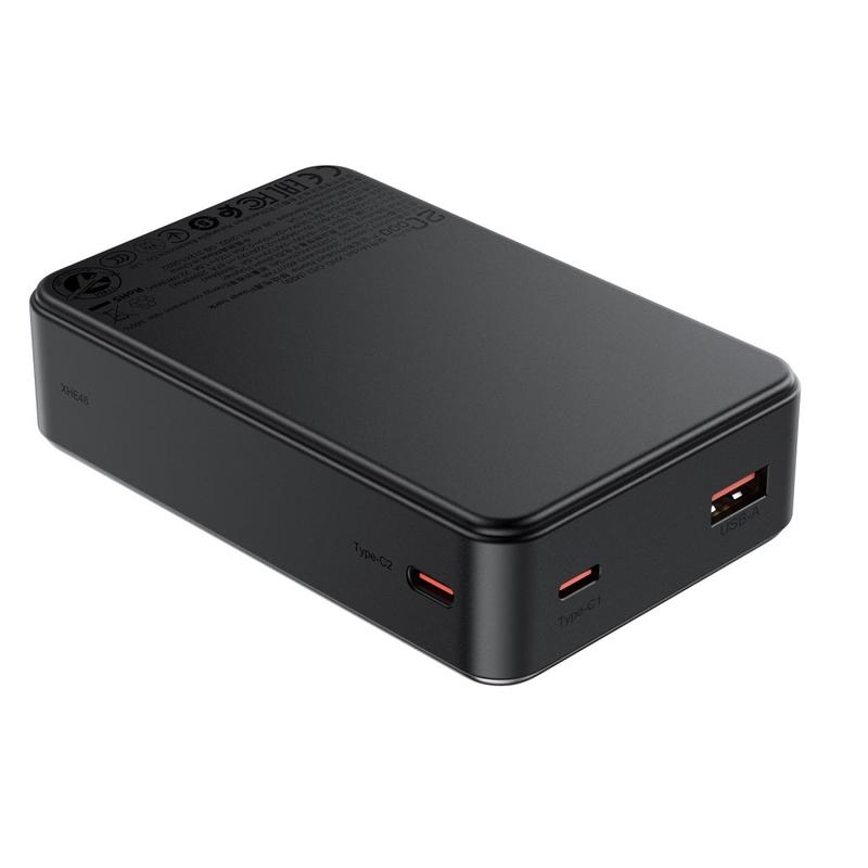 - To USB-C-utganger (20 W hver) og USB-A-utgang (22.5W) for lading av flere enheter
