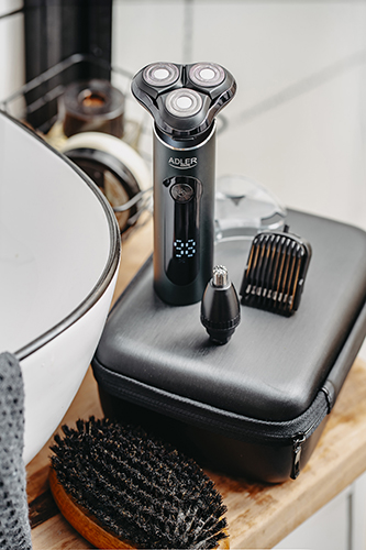 Adler 3-i-1-reisebarbermaskinen er det perfekte valget for menn som setter pris på kvalitet og komfort. Barbermaskinen er utstyrt med 3 bevegelige hoder og et system med uavhengige blader som sikrer maksimal nøyaktighet ved barbering av ansikt og hals. Klar til bruk når som helst takket være egne batterier og USB-lading. Det innebygde oppladbare batteriet gjør at du kan bruke den i opptil 180 minutter. Praktisk og rask lading via USB-kabelen og laderen som følger med i settet. Et slitesterkt reiseetui beskytter barbermaskinen på forretnings- eller feriereiser.