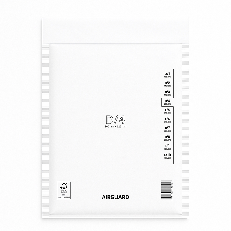 AirGuard Boblepolstret konvolutt D4 - Innvendige mål: 180x265 mm, utvendige dimensjoner: 200x275 mm
