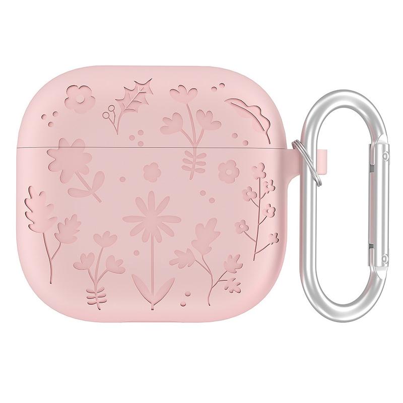 Flytende silikonetui med blomstermønster og karabinkrok til AirPods 4
