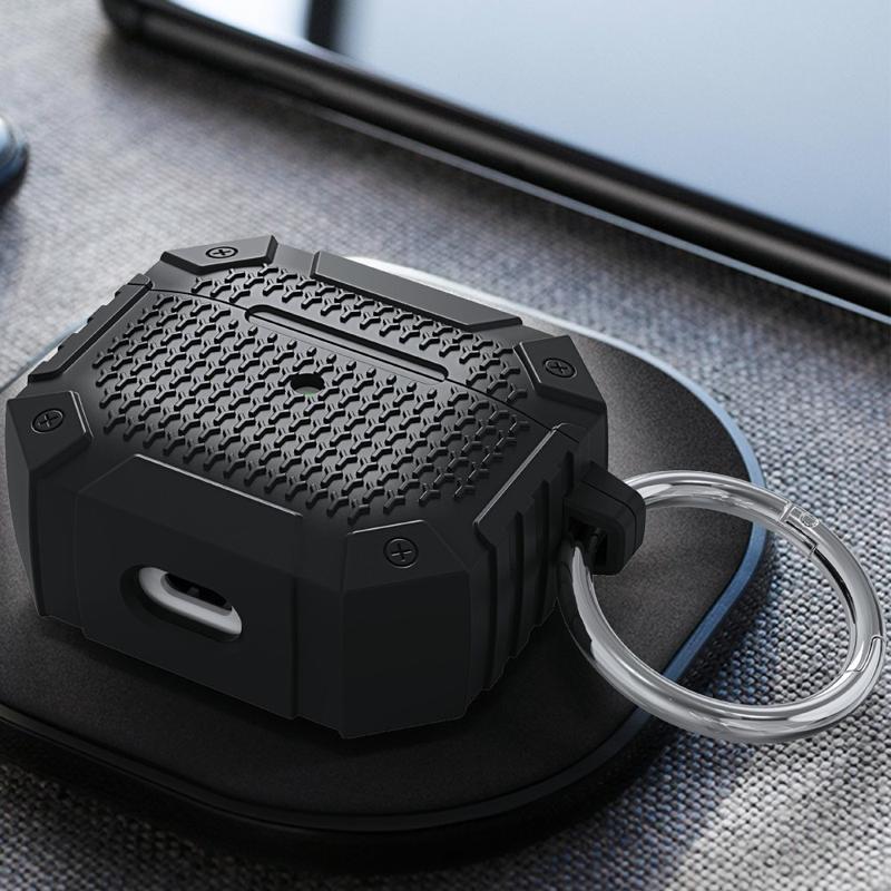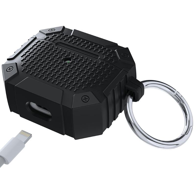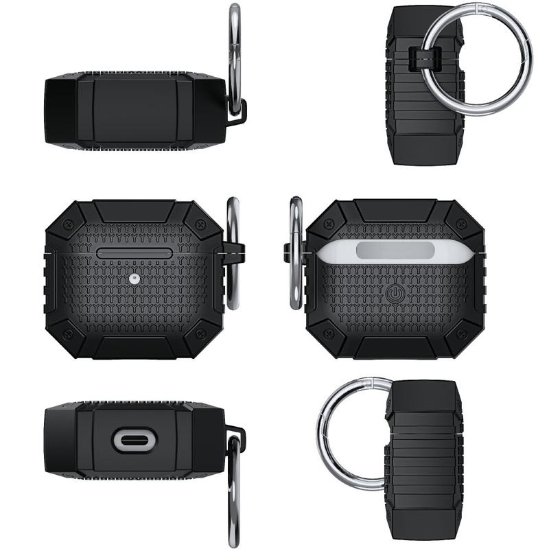Støtsikkert, forsterket TPU-etui for AirPods 4 - militær beskyttelse med karabinkrok