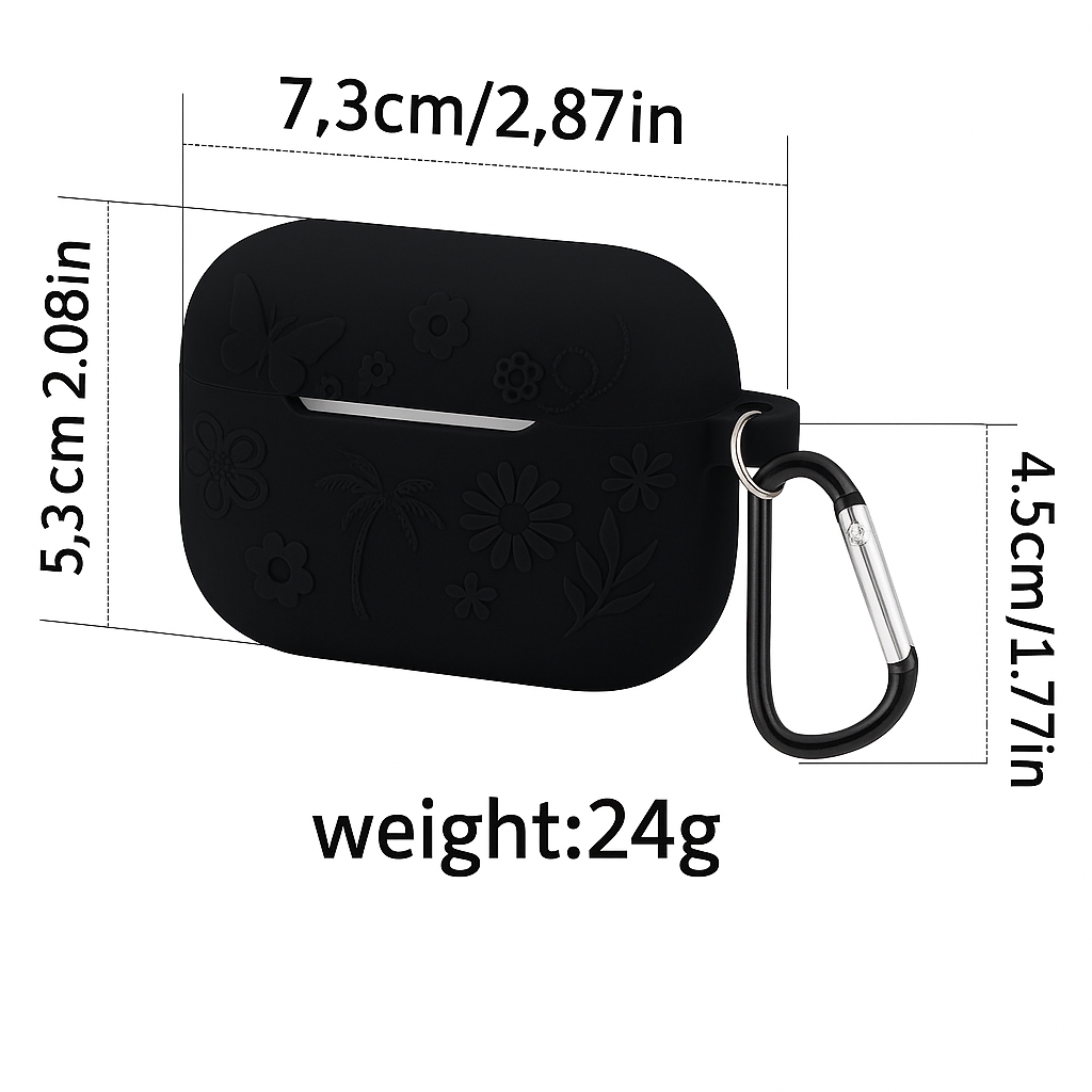 Flytende silikonetui med blomstermønster og karabinkrok til AirPods Pro 3