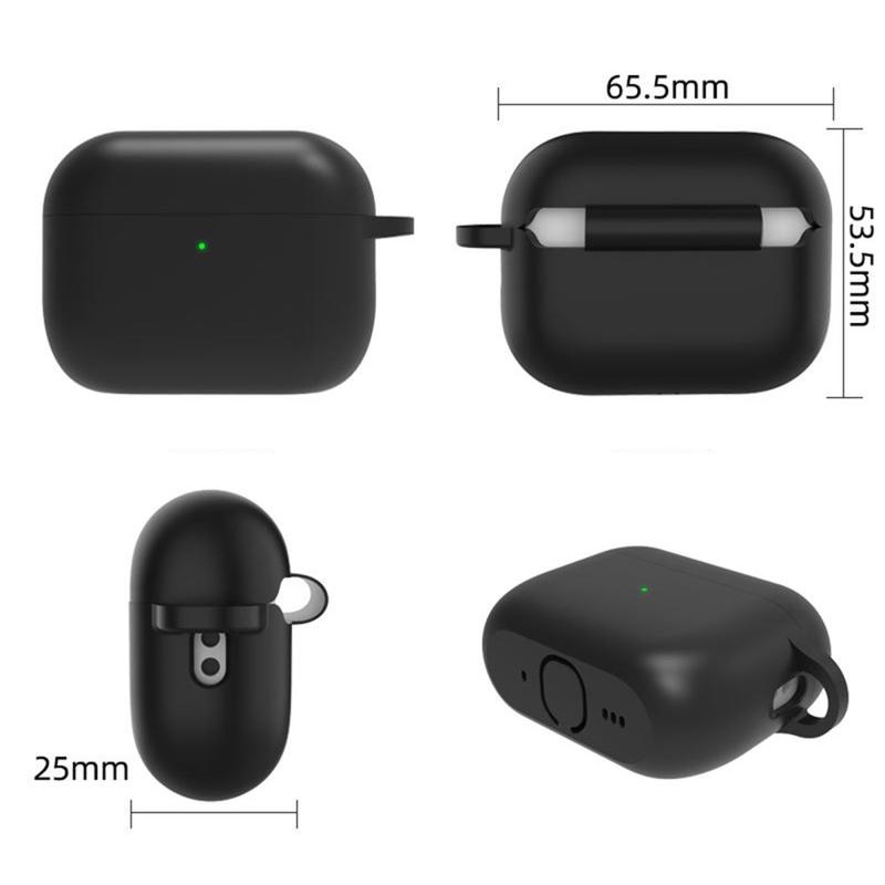 - Spesifikasjoner - Materiale: Silikon | Kompatibilitet: AirPods Pro 3 | Tilbehør: Etui + karabinkrok + rengjøringspenn.