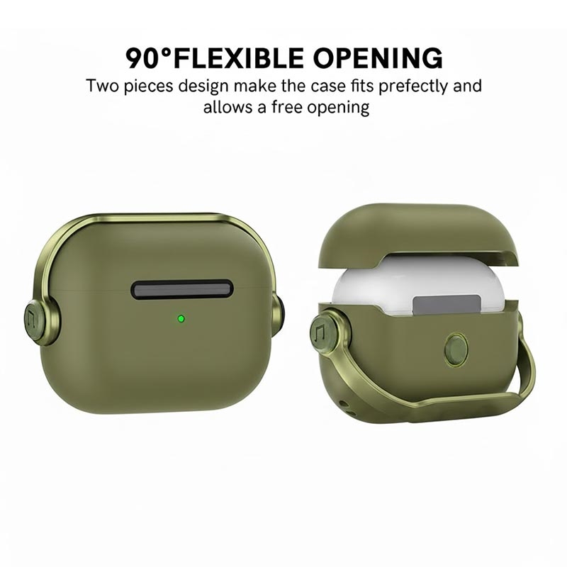 Den 90° roterende låseklemmen holder etuiet godt lukket, forhindrer utilsiktet åpning og sørger for at AirPods er beskyttet selv om du mister dem i gulvet eller bærer dem i en veske.