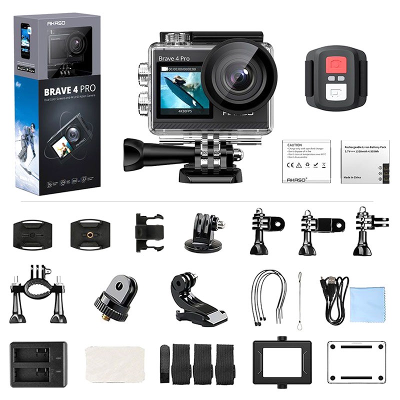 Akaso Brave 4 Pro Doble Skjermer og 4K UHD Actionkamera med Vanntett Deksel og Fjernkontroll - 20MP, 2x 1350mAh