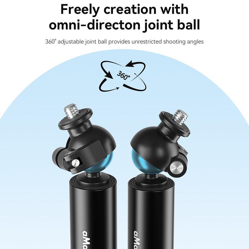 Amagisn Selfie Stick for sportskamera med kulehode og 1/4" skrue for DJI, GoPro, Insta360