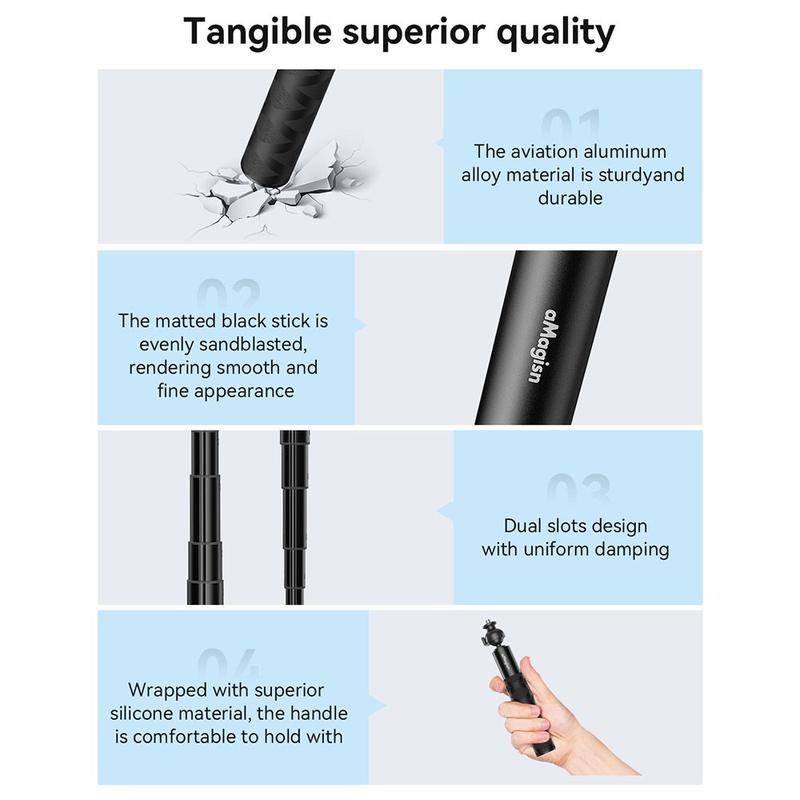 AMAGISN 120cm Sports Camera Selfie Stick er ideell for fotografer og videografer som trenger et slitesterkt, justerbart og bærbart verktøy for å fange hvert øyeblikk med presisjon og kreativitet.