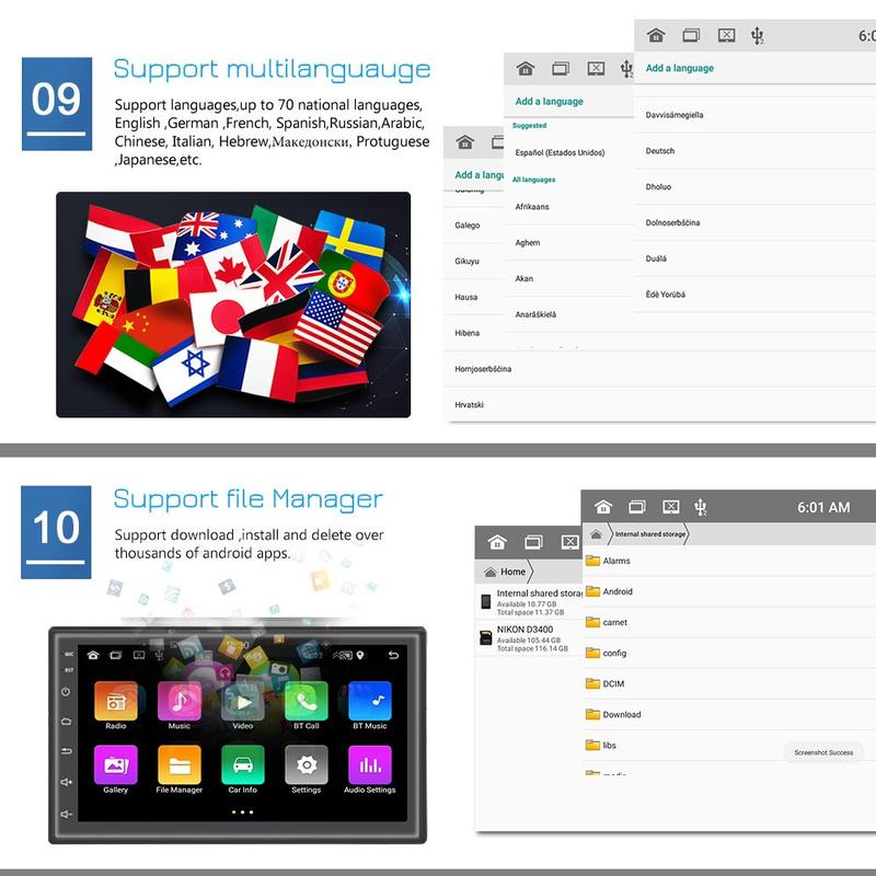 Android 11 bilstereo med GPS-navigasjon, WiFi, Bluetooth R-730 - 16 GB - 7"