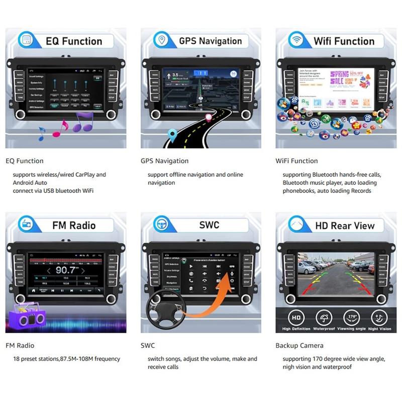 Oppgrader dashbordet ditt med Android 13-bilstereoen, en 7-tommers multimediaspiller som er utviklet for å gjøre kjøringen mer tilkoblet og praktisk. Med trådløs støtte for Android Auto, innebygd Bluetooth, GPS, Wi-Fi og en responsiv berøringsskjerm gir den deg enkel tilgang til navigasjon, samtaler, musikk og hverdagsapper mens du er på veien.