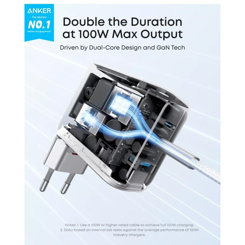 - 100W maksimal total utgangseffekt for hurtiglading av flere enheter