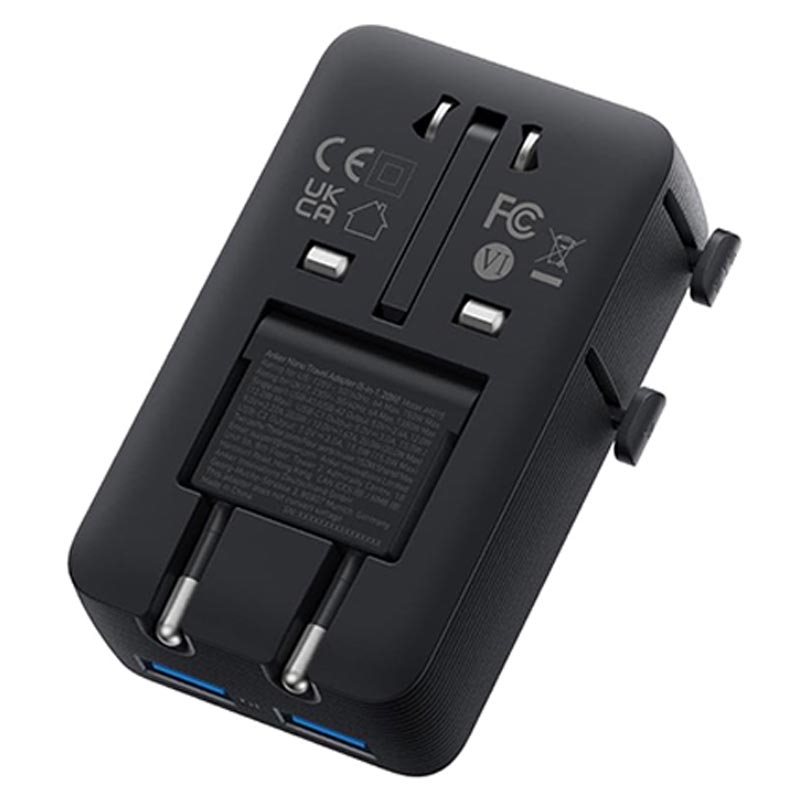 Anker Nano reiseadapter - Universal strømadapter med 5 porter, 1 AC-, 2 USB-A- og 2 USB-C-porter, 20W hurtiglading