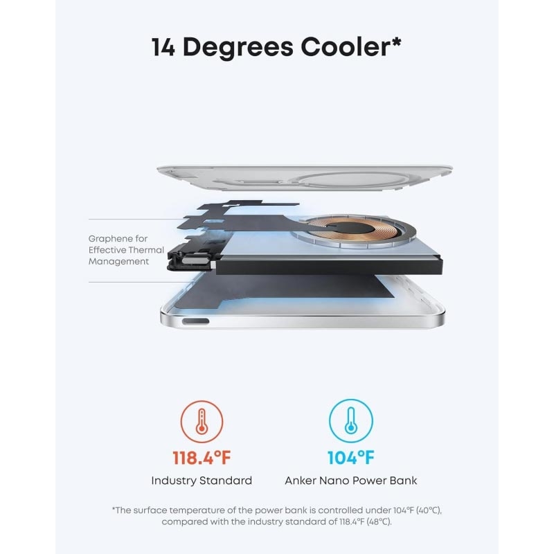 Anker Nano Power Bank er designet for brukere som ønsker rask og sikker lading uten å måtte bære med seg en klumpete powerbank. Den magnetiske festen gjør ladingen enkel og kabelfri, mens USB-C-porten gir fleksibilitet når det er behov for raskere kablet lading. Med avanserte kjøle- og sikkerhetsfunksjoner leverer den pålitelig ytelse i et kompakt, førsteklasses design.