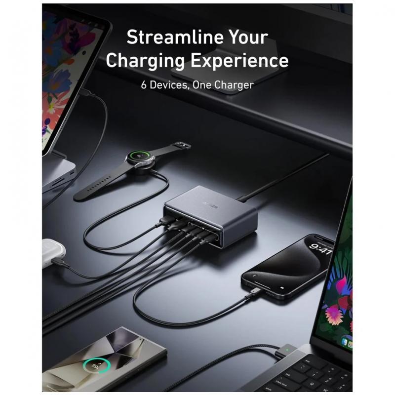 Anker Prime 200 W stasjonær ladestasjon - 4x USB-C, 2x USB-A, EU-kontakt