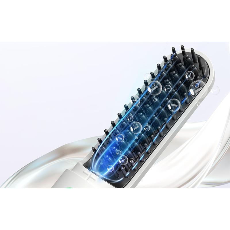 Tøyle morgenkrus og tilfør naturlig glans i ett enkelt strøk. Denne batteridrevne børsten frigjør en strøm av negative ioner mens de keramiske varmetennene glir gjennom hårstråene og etterlater håret glatt, uten statisk elektrisitet og behagelig mykt - uansett om du er hjemme, i garderoben på treningssenteret eller på vei til toget.