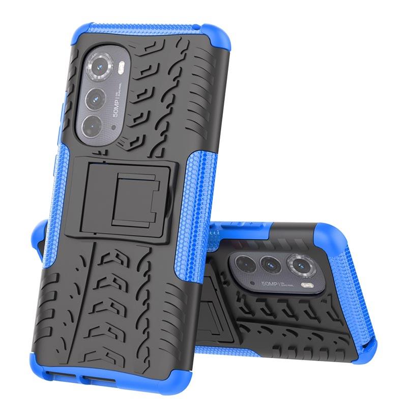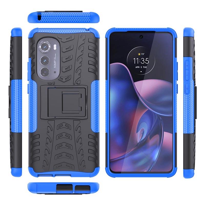 Anti-Slip Motorola Edge (2022) Hybrid-deksel med Stativ - Blå / Svart