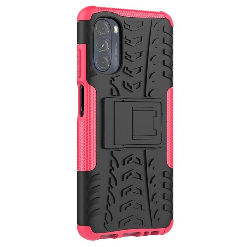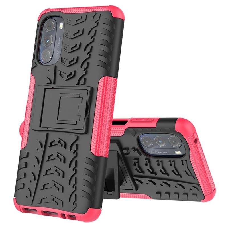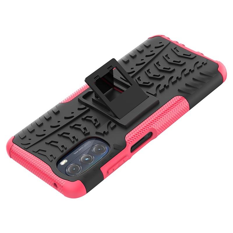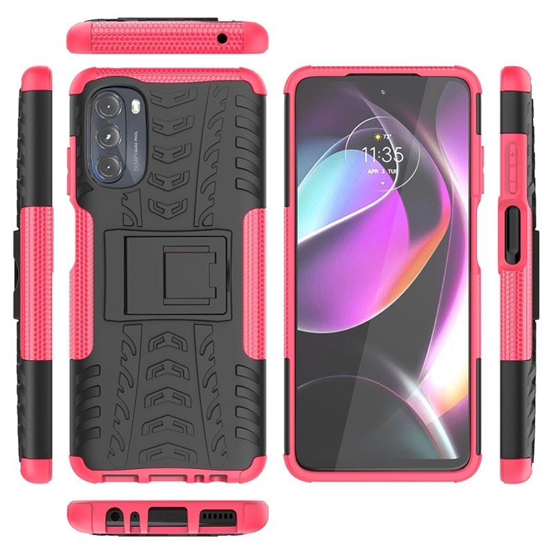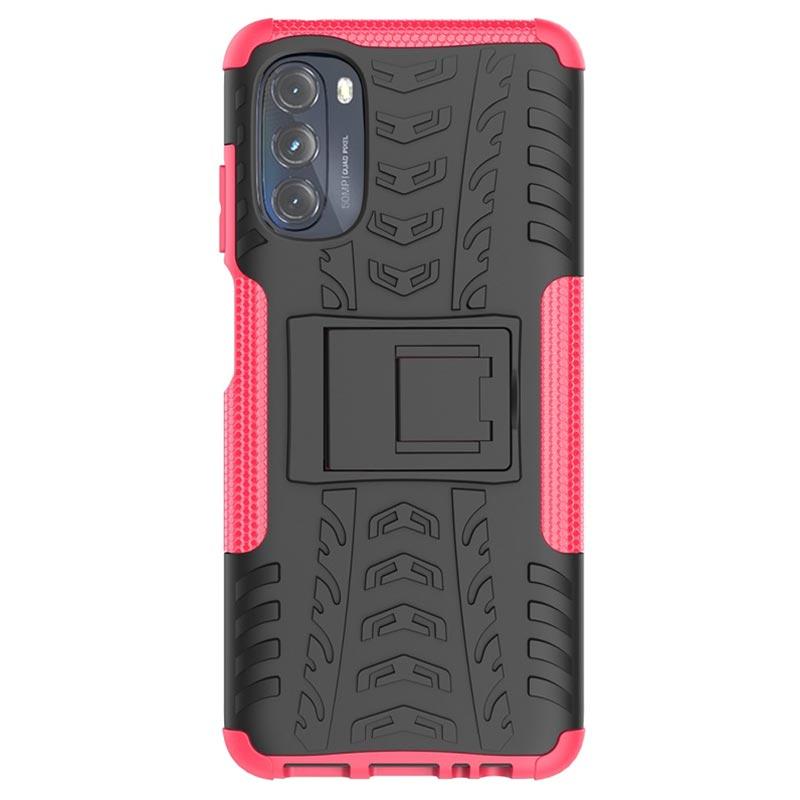 - Et kraftig hybriddeksel til Motorola Moto G (2022) med stativfunksjon