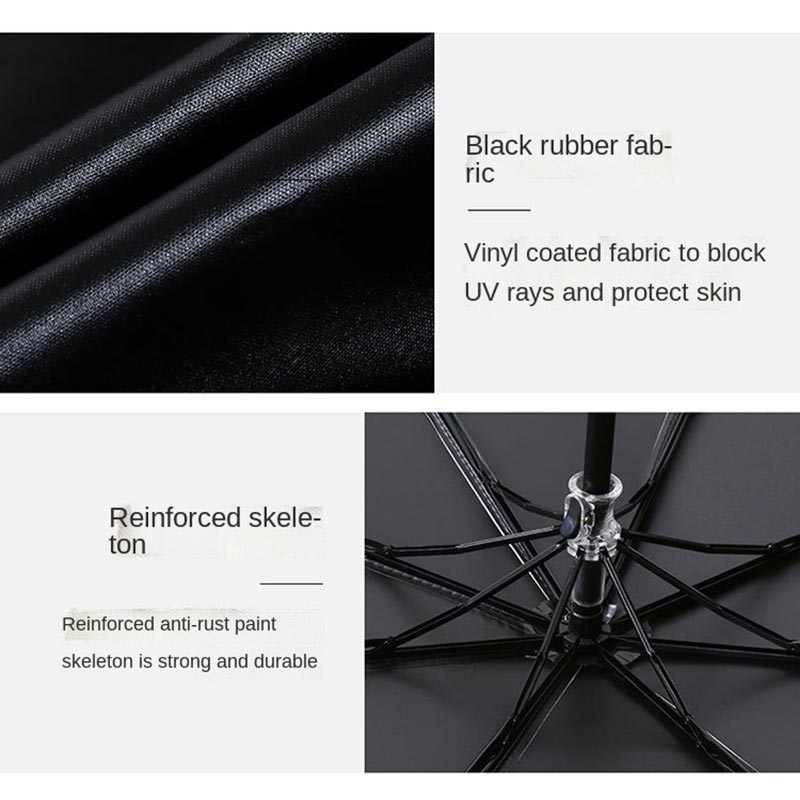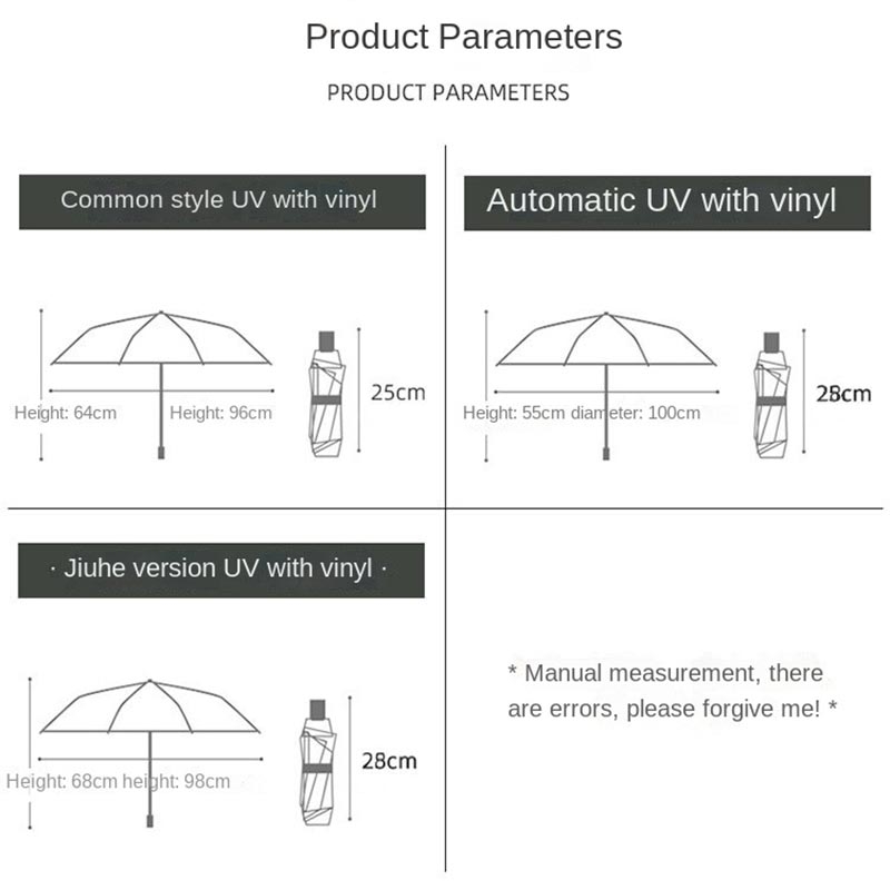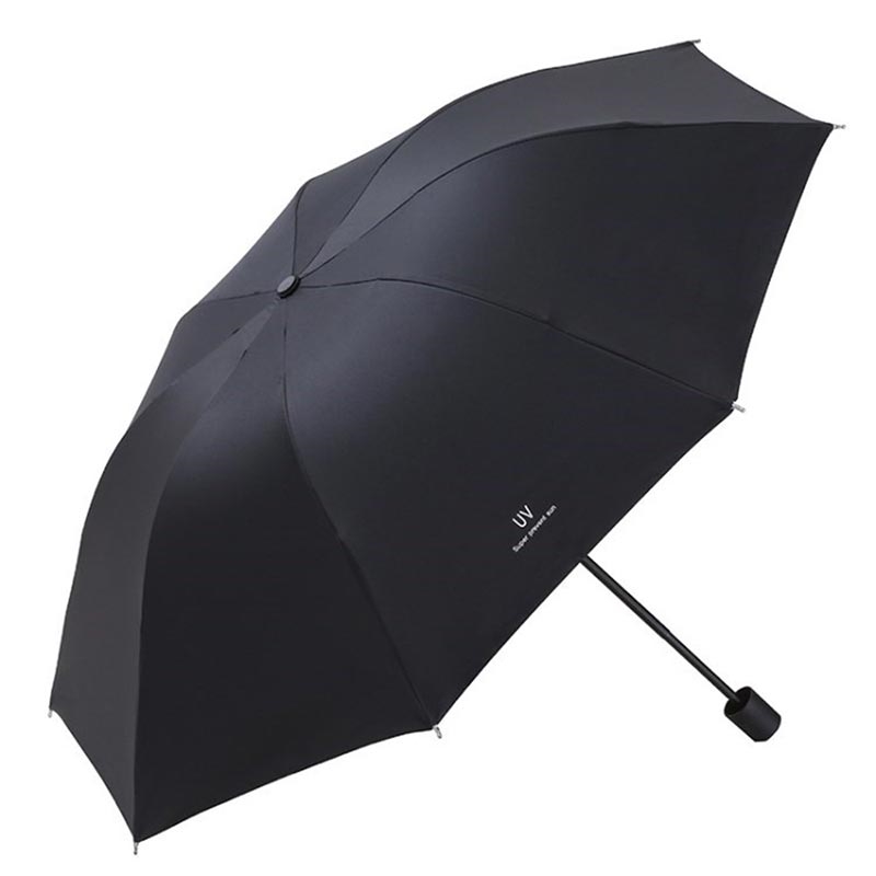 Anti-UV kompakt sammenleggbar paraply - bærbar reiseparaply for sol og regn med 8 ribber, trefoldig design, oppbevaringspose