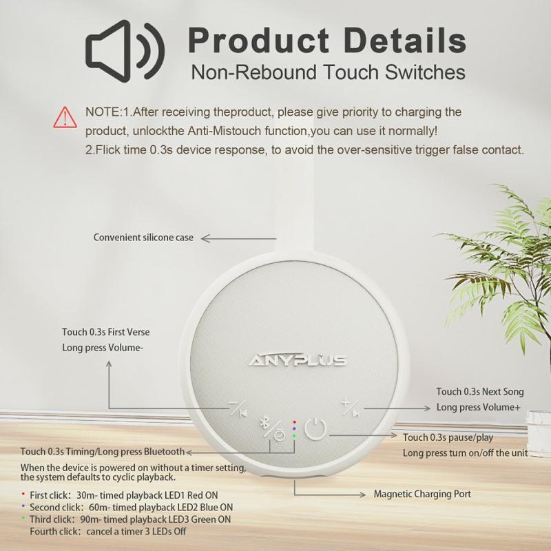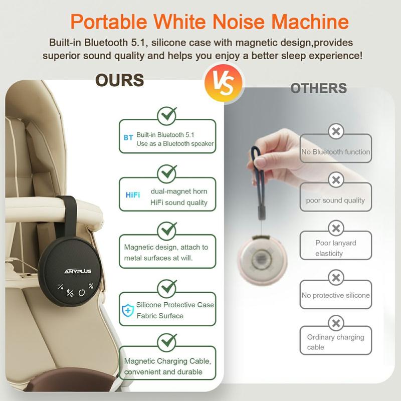 AnyPlus bærbar hvit støymaskin for babysøvn / søvnhjelp lydmaskin med Bluetooth-høyttaler