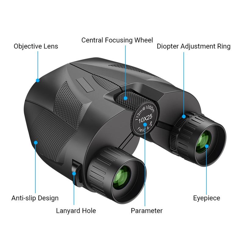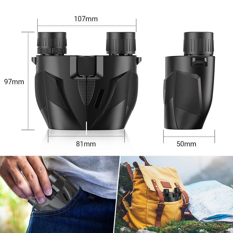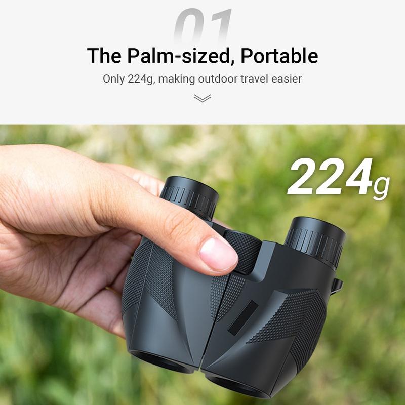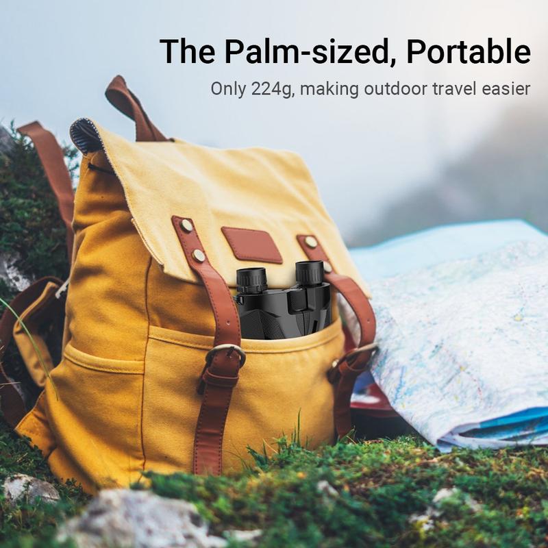 APEXEL 10×25 HD-kikkerten kombinerer høykvalitetsoptikk med en kompakt, lett og sammenleggbar design - perfekt for reiser, konserter, fotturer, fuglekikking og hverdagsbruk utendørs. Kikkerten veier bare 224 g og er liten nok til å få plass i håndflaten, noe som gjør den svært lett å ta med seg uten at det går på bekostning av optisk klarhet.