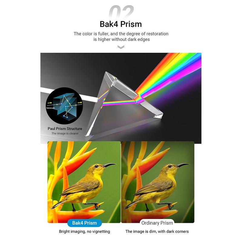 - BAK4-prismene gir høyere lysstyrke og bedre kantkvalitet enn BK7-prismene