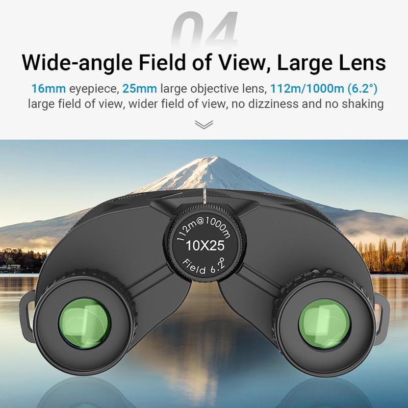 Apexel 10x25 HD bærbar kikkert - kompakt sammenleggbar BAK4 FMC-optikk for fuglekikking, konserter og utendørs bruk