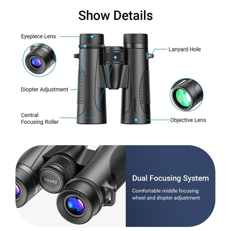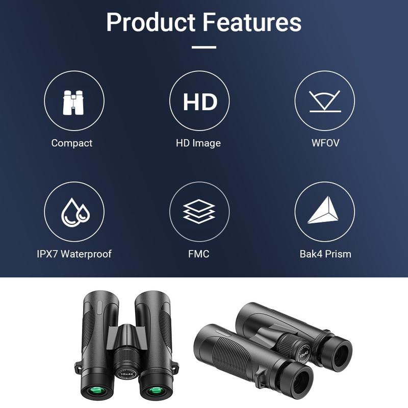 Apexel 10x42 HD vanntett kikkert - FMC flerbelagt, BAK4-prisme, syn i svakt lys for fuglekikking, jakt og utendørs bruk