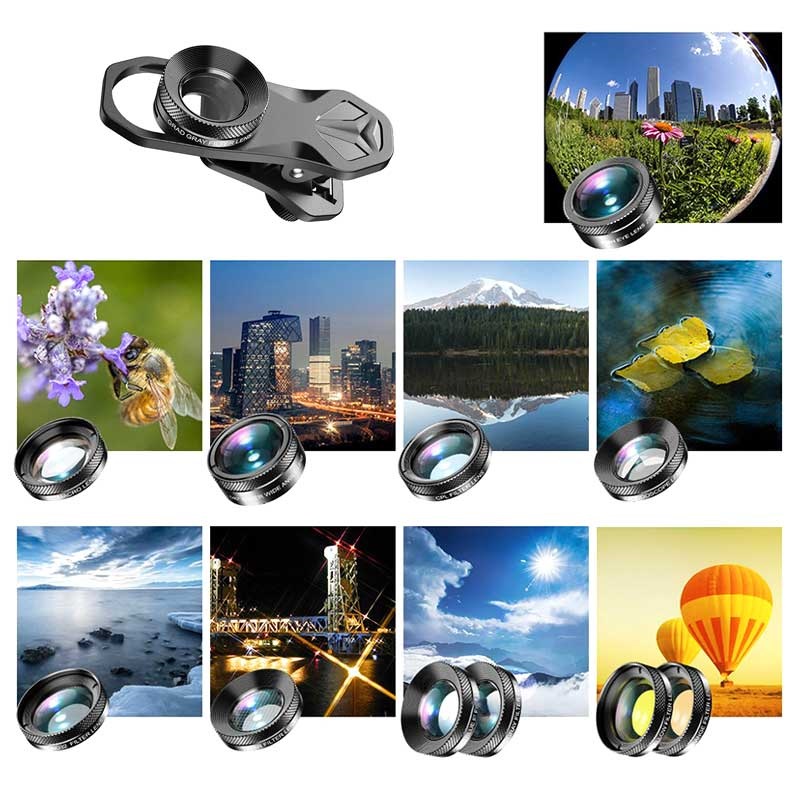 Lag eksepsjonelle bilder som en profesjonell med dette Apexel 11-i-1 universelle kameralinsesettet. De tilbyr deg mange alternativer som er perfekte for landskap, selfier og gruppebilder. Endre stemningen og ta bilder med bredere visning med dette universelle kameralinsesettet.