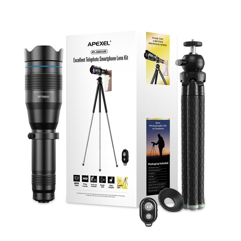 APEXEL APL-JS60XJJ09 60X monokulært teleskop med mobilt teleobjektiv + stativ for mobiltelefoner