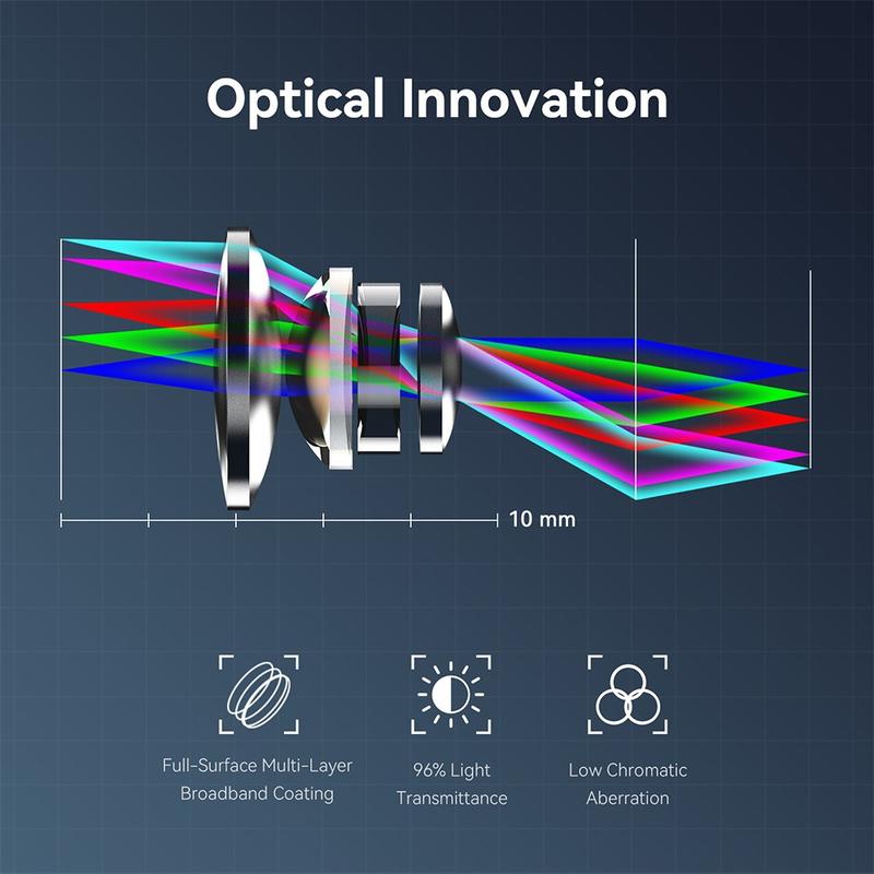 - Avansert optisk konstruksjon - Flerlags bredbåndsoptisk belegg med 96 % lysgjennomgang minimerer forvrengning og kromatisk aberrasjon, noe som gir klare og fargesterke bilder.
