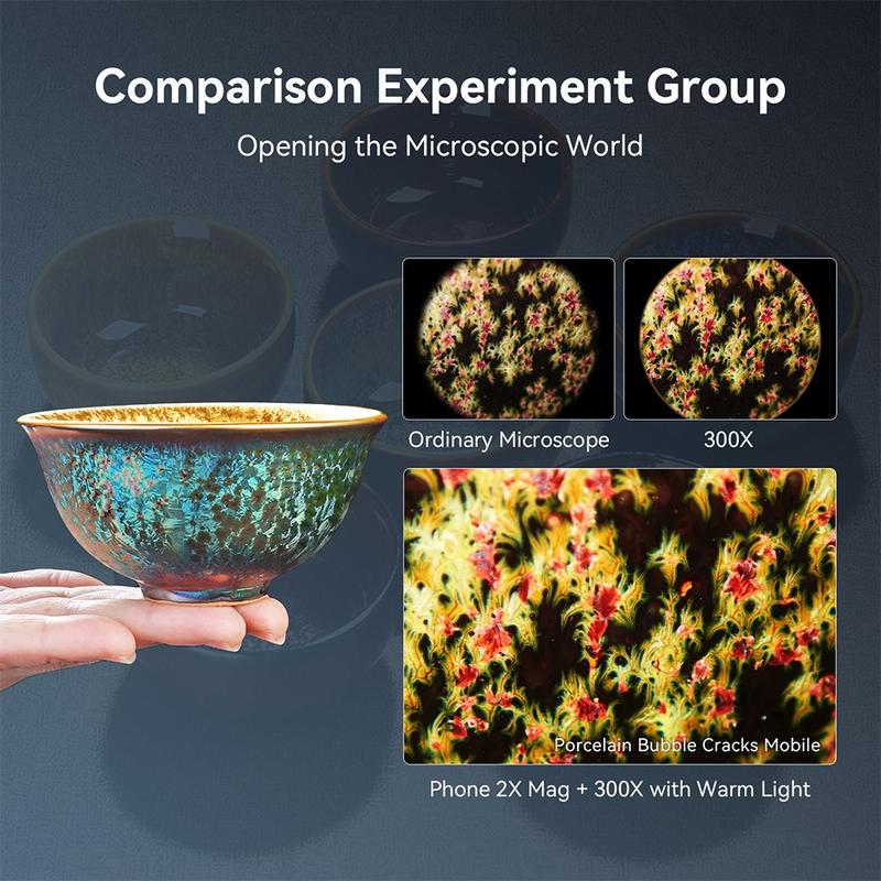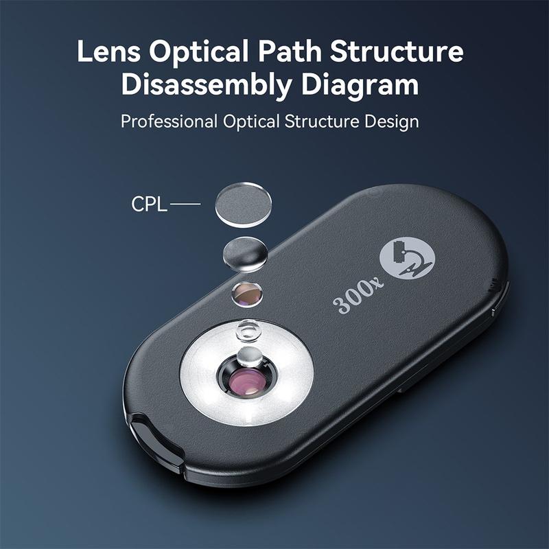 Gjør smarttelefonen din om til et kraftig, bærbart mikroskop med APEXEL APL-MS300 300X mikroskopobjektiv med klips. Dette kompakte tilbehøret er designet med profesjonell optikk og avanserte belysningssystemer, og gir deg forstørrelse på laboratorienivå rett på telefonen - perfekt for vitenskapsentusiaster, lærere, gullsmeder og teknikere.
