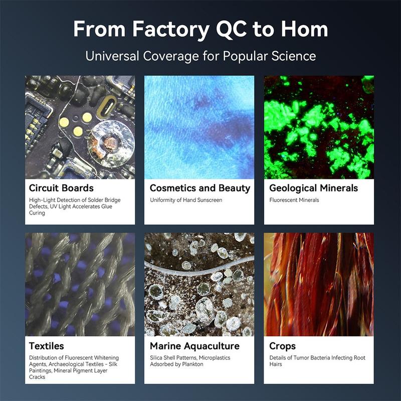 - Mange bruksområder - Ideell for vitenskapelig utdanning, valuta- og smykkeinspeksjon, PCB- og mikrobrikkeanalyse, plante- og insektobservasjon og mye mer.