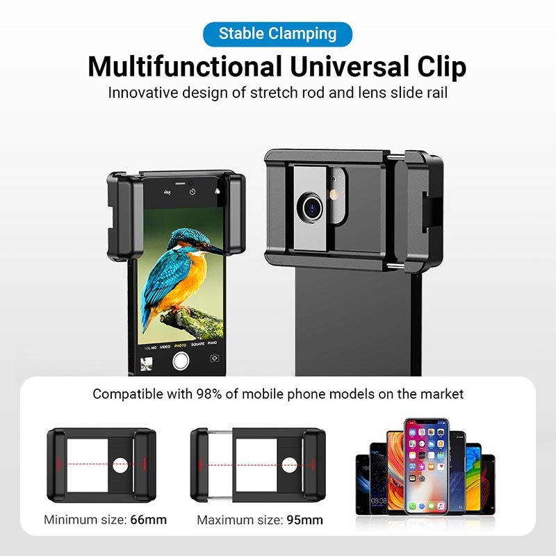 Med 20X til 40X forstørrelse og HD-belagt glasslinse kan denne zoom-monokularen enkelt løse fotograferingsproblemer forårsaket av avstand, og gir deg en bredere, klarere og lysere fotoopplevelse. Enkelt og fasjonabelt utseende med frostet overflate, vanntett og sklisikker. Kan brukes på flere scener, perfekt for fotturer, jakt, klatring, fuglekikking osv.