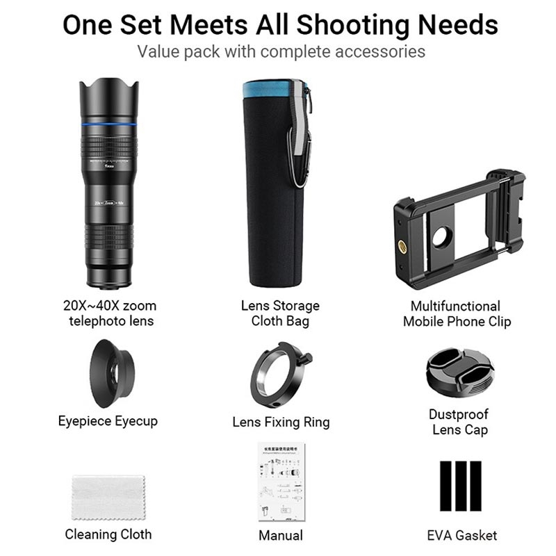APEXEL HD metall 20-40x zoom teleskop teleskop teleobjektiv monokulært telefonkameraobjektiv for iPhone Samsung Huawei