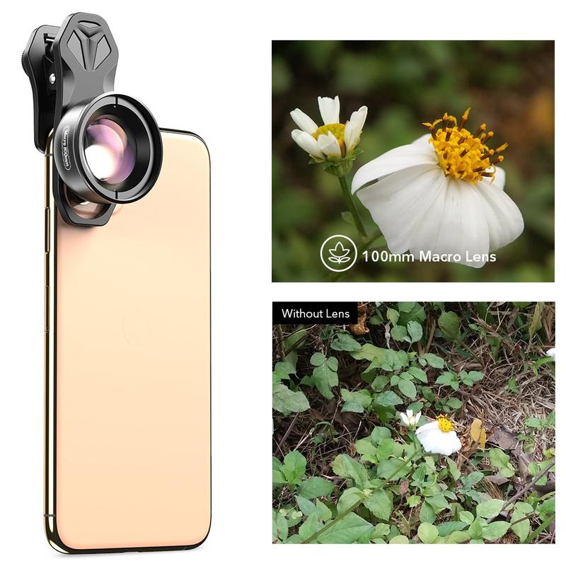 Apexel universelt 100 mm 4K-makroobjektiv - kameraobjektiv for smarttelefoner og nettbrett