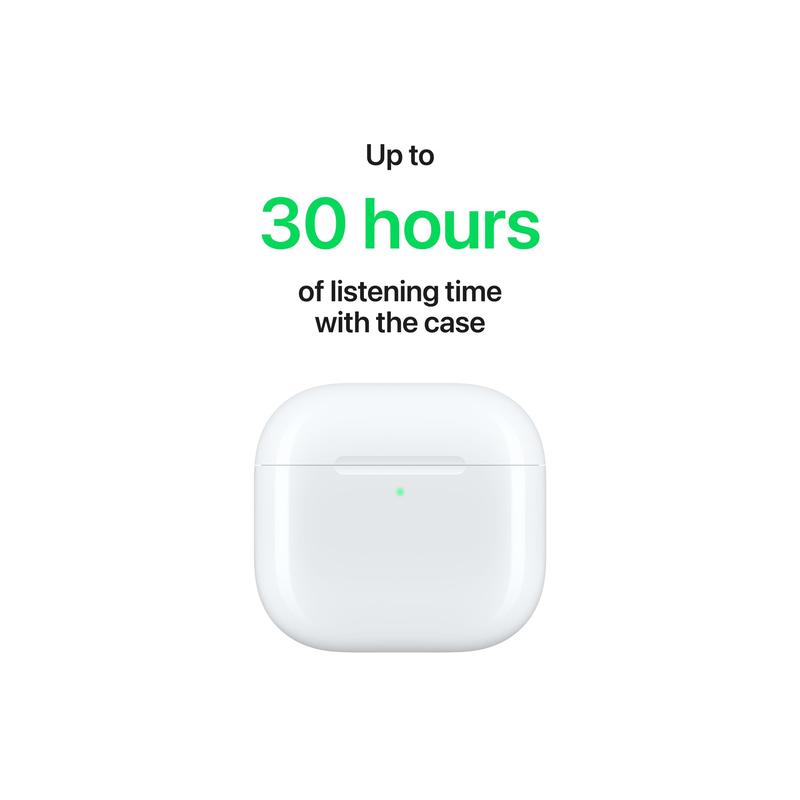 Opplev et nytt nivå av lyd med Apple AirPods 4. De er redesignet for å gi en tettsittende passform og optimalisert lyd, og har den kraftige H2-brikken for klarere samtaler med stemmeisolering og sømløs personalisert romlig lyd. Disse AirPods er IP54-klassifisert for støv-, svette- og vannmotstand, og holder tritt med din aktive livsstil. Nyt opptil 30 timers lyttetid med USB-C-ladeetuiet, og hold kontakten med Bluetooth 5.3.