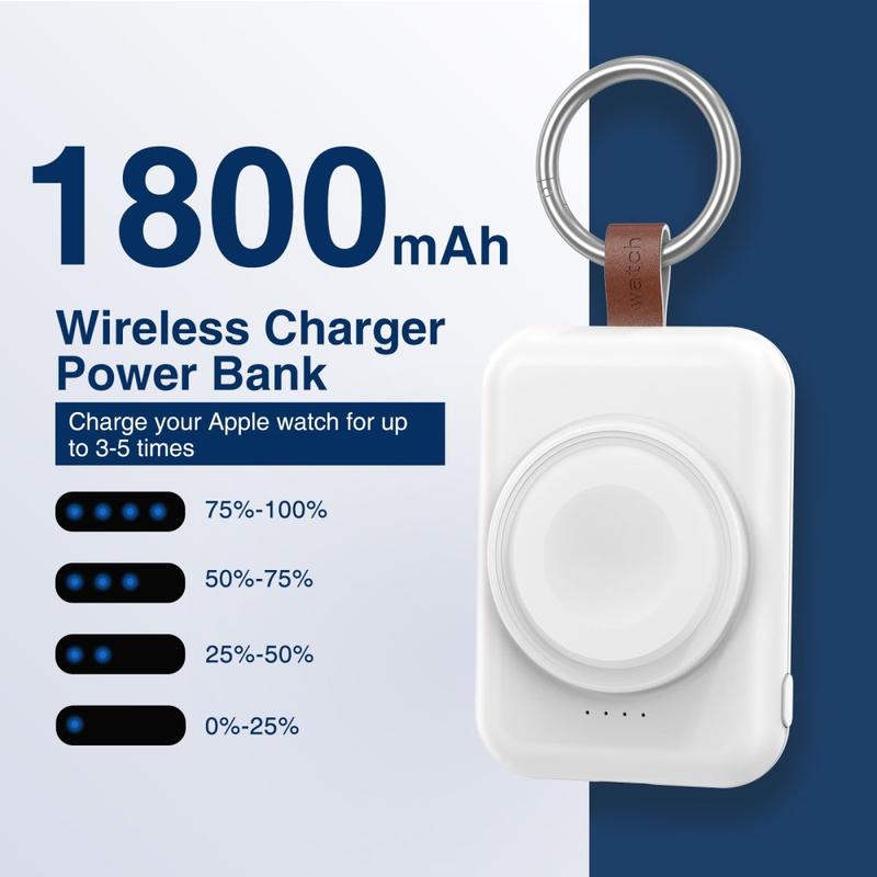 Hold Apple Watch ladet når du er på farten med A-04 Portable Mini Wireless Charger. Denne kompakte 1800mAh-strømbanken har en praktisk ringspenne som gjør det enkelt å feste den, slik at smartklokken din får strøm under utendørsaktiviteter og på reise.